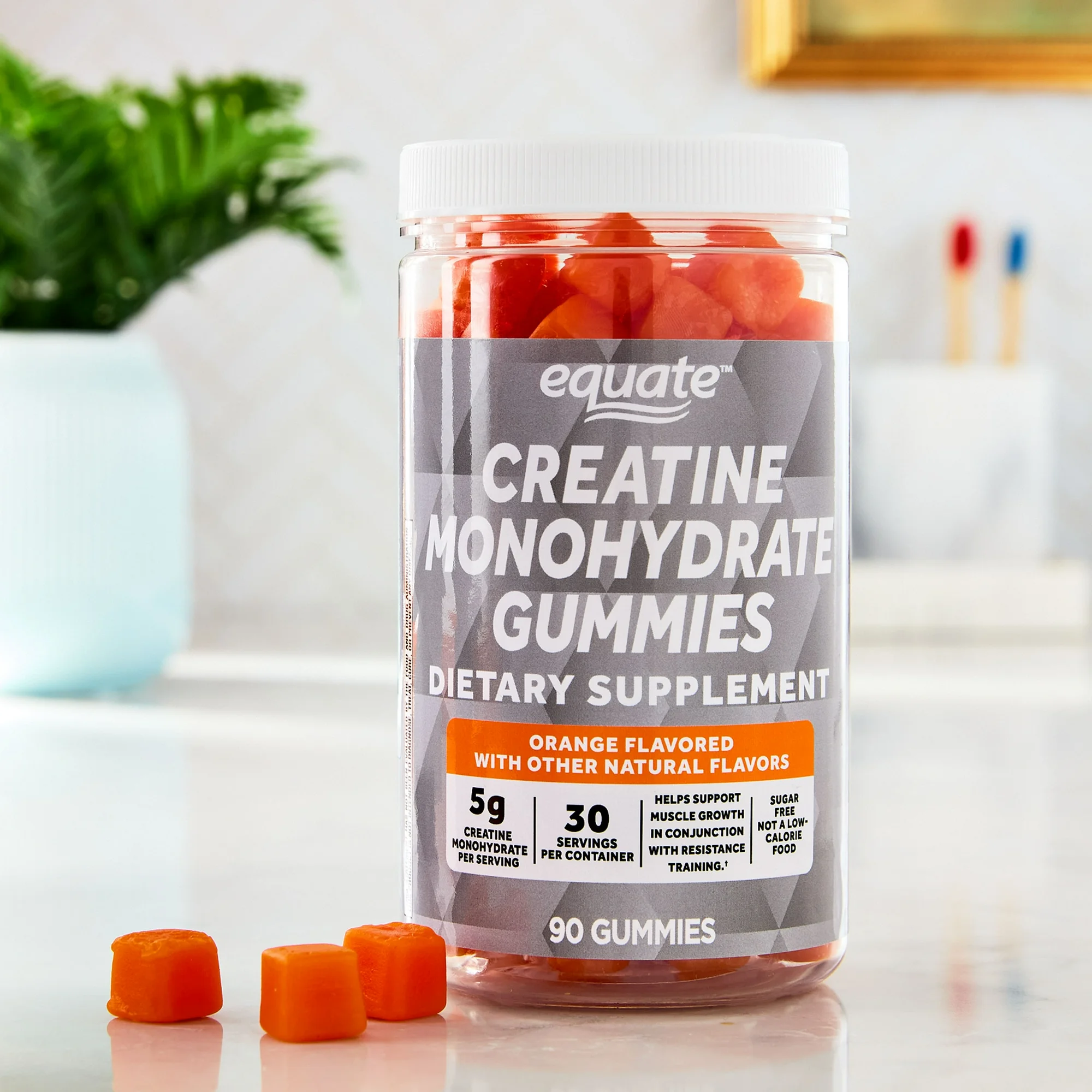 - Equate Creatine Monohydrate Dietary Supplement Gummies, Orange Flavor, 90 Count